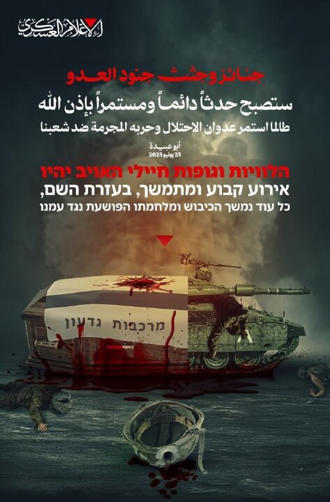 این گروه همچنین تأکید کرد: تا زمانی که تجاوز ادامه داشته باشد، تابوت‌ها و اجساد ارتش دشمن به یک رویداد مداوم تبدیل خواهد شد.